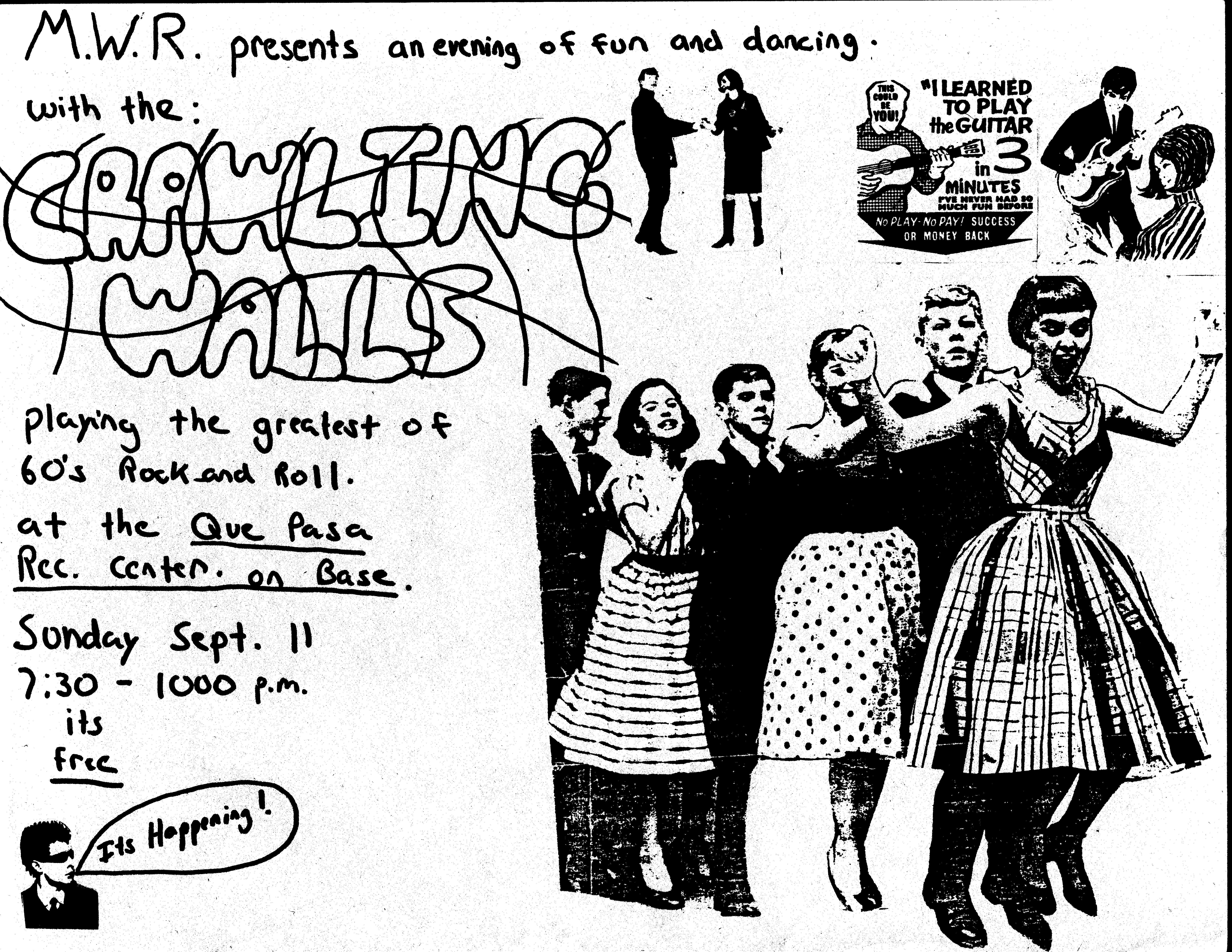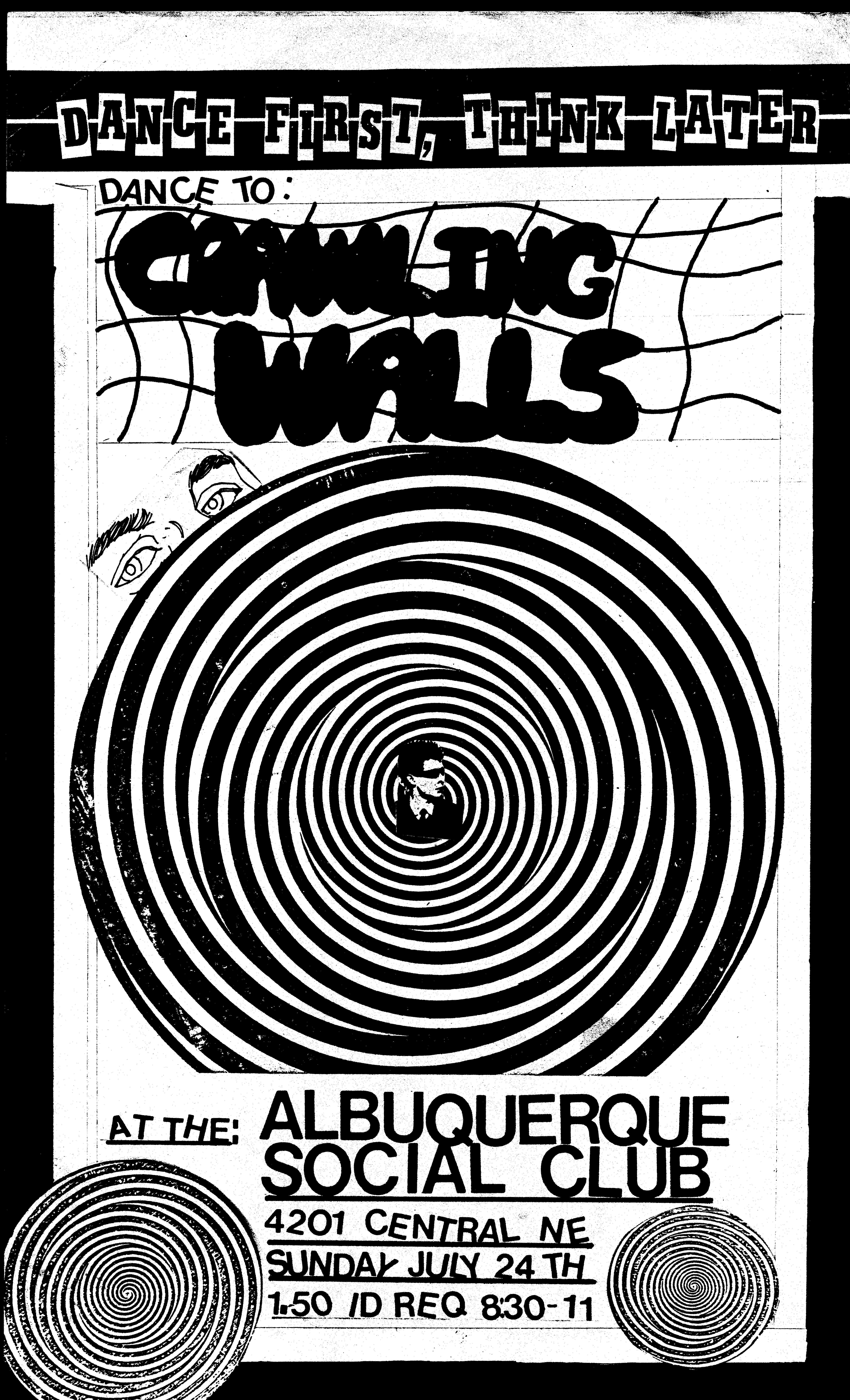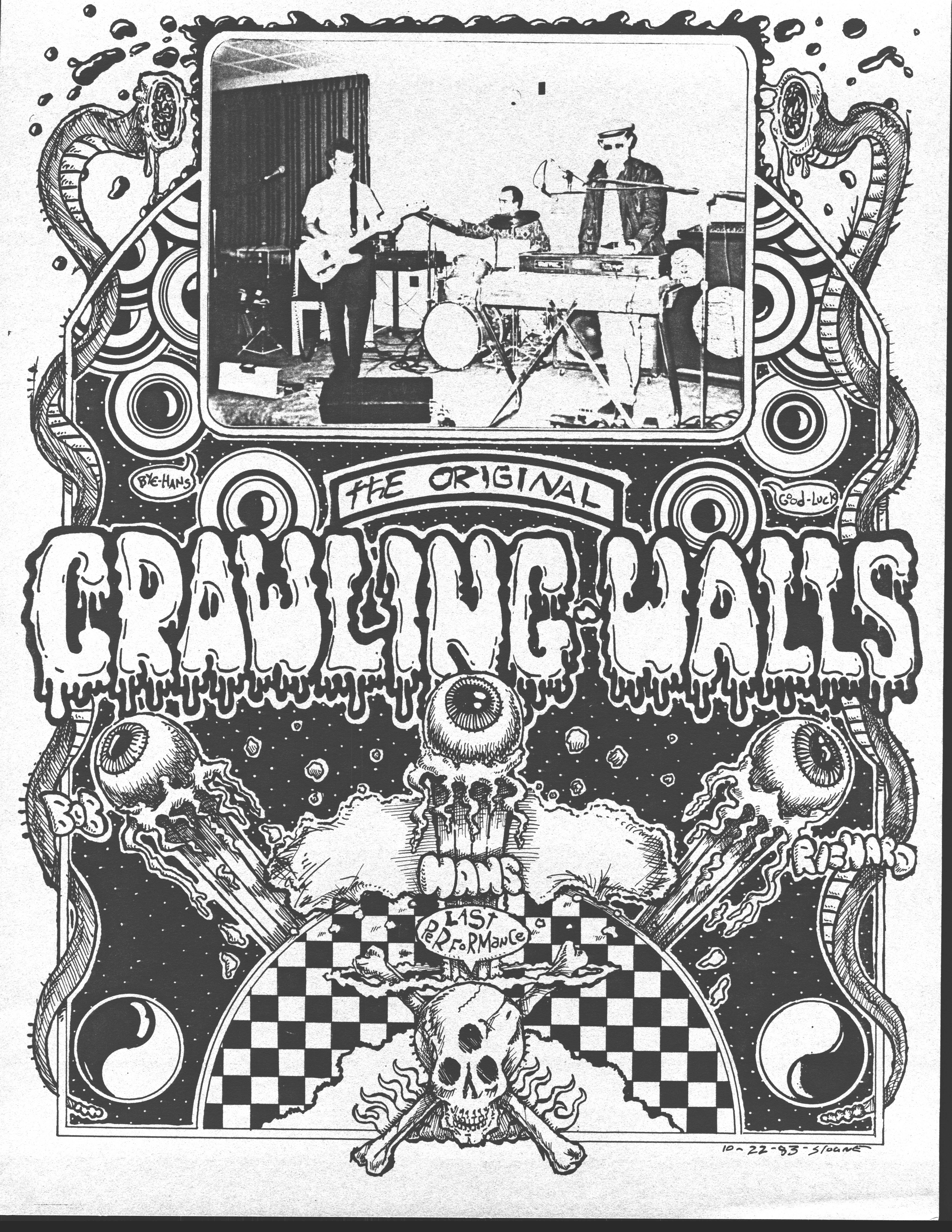 Our actual last show was 4 days later in Hollywood, at Bomp Record's Cavern Club. The last song of our set was "Falling Away," whose final lines are "Look at the walls, how they crawl and they sway. I can't see them now, 'cause they're falling away."