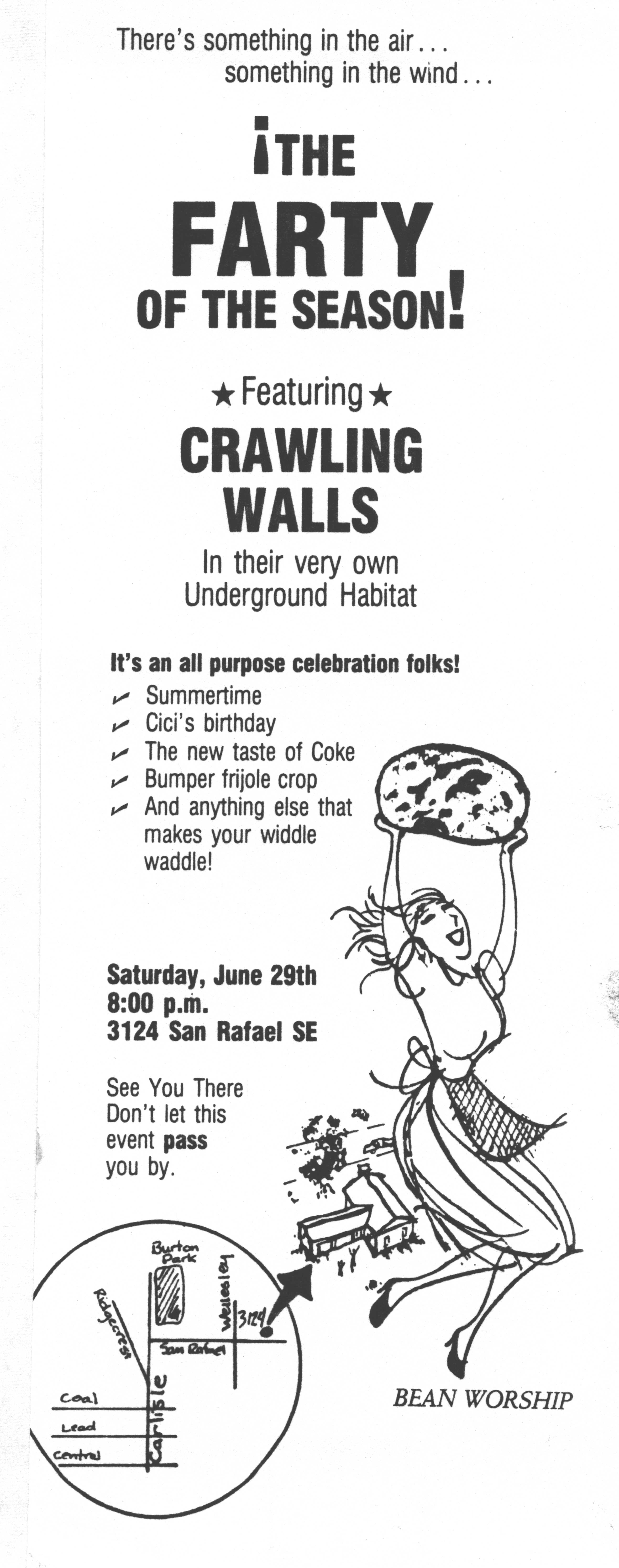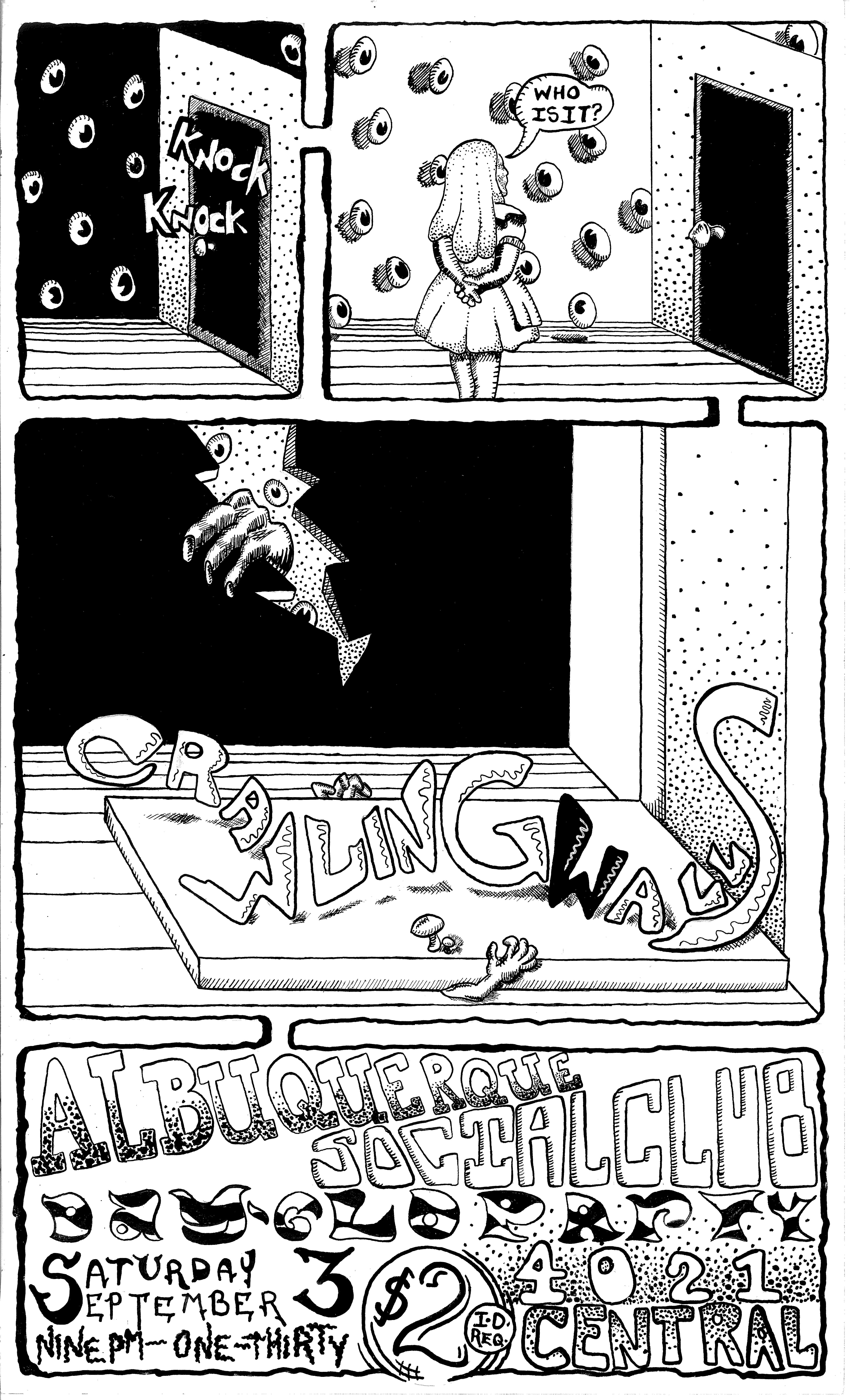 , Carl Petersen and Bill Mudd are still in the 'Burque. After the Crawling Walls, Carl and Bill had a band called the Ant Farmers and recorded an album in 1990. Also, Bill played drums in the Strawberry Zots at some point after Mike Glover had left the band. Carl is currently the editor of the Weekly Alibi, Albuquerque's alternative newsweekly.I'm still writing songs and playing music. Along with Adam Bayer (former drummer of The Mooney Suzuki) and guitarist extraordinaire Will Ivy, we are The Low Twelve. Give it a listen—you'll hear echoes of the Crawling Walls.