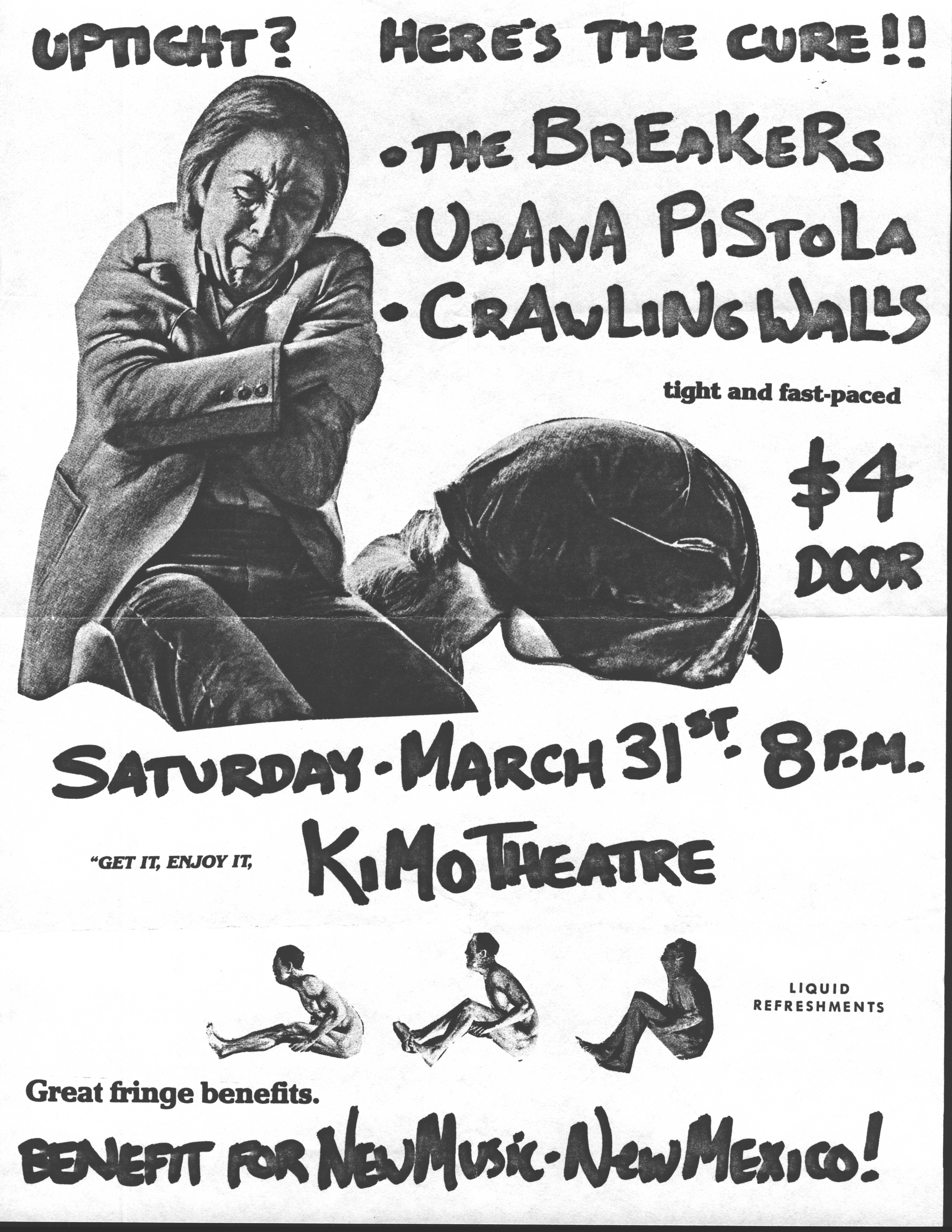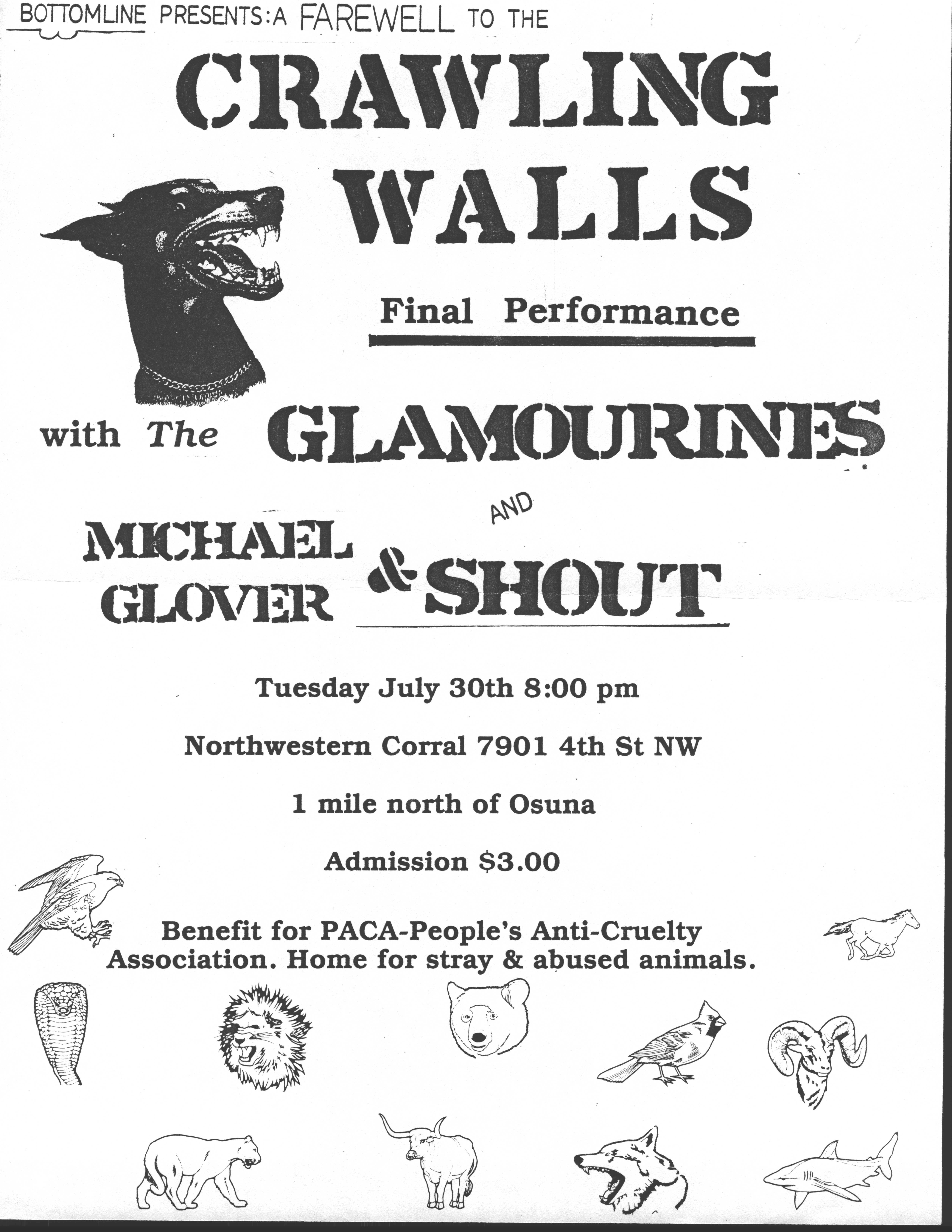 Our last show in Albuquerque was on July 30, 1985, at the Northwestern Corral. One of the bands we played with was Michael Glover & Shout. Mike had been the drummer in the Philisteens, Larry's former band. A few years later, Mike played drums in the Strawberry Zots, another Albuquerque psychedelic band.